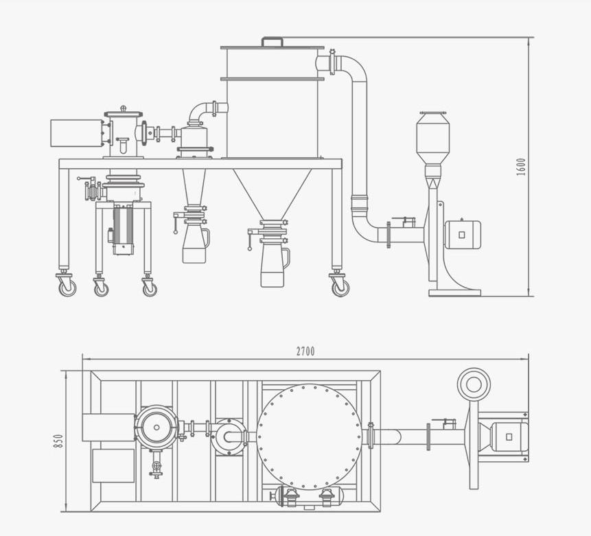 - 结合气流粉碎、气流分级、机械粉碎于一体的三合一组合式结构。