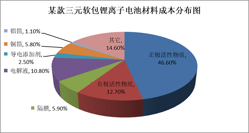 某款三元软包锂离子电池材料成本分布图